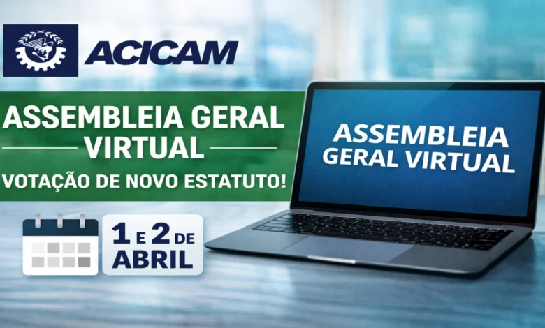 A assembleia foi convocada pelo presidente Francisco Viúdes, depois de consultado o Conselho Deliberativo. O formato digital está respaldado nos termos da regulamentação interna e da legislação civil vigente, sendo assegurados aos associados da entidade o acesso prévio à íntegra da proposta submetida à deliberação; a participação no ambiente eletrônico; o exercício do direito de manifestação e o voto, observadas as condições estatutárias. Eventuais dúvidas podem ser esclarecidas junto à secretaria da Acicam (44 98455-3596), em horário comercial.